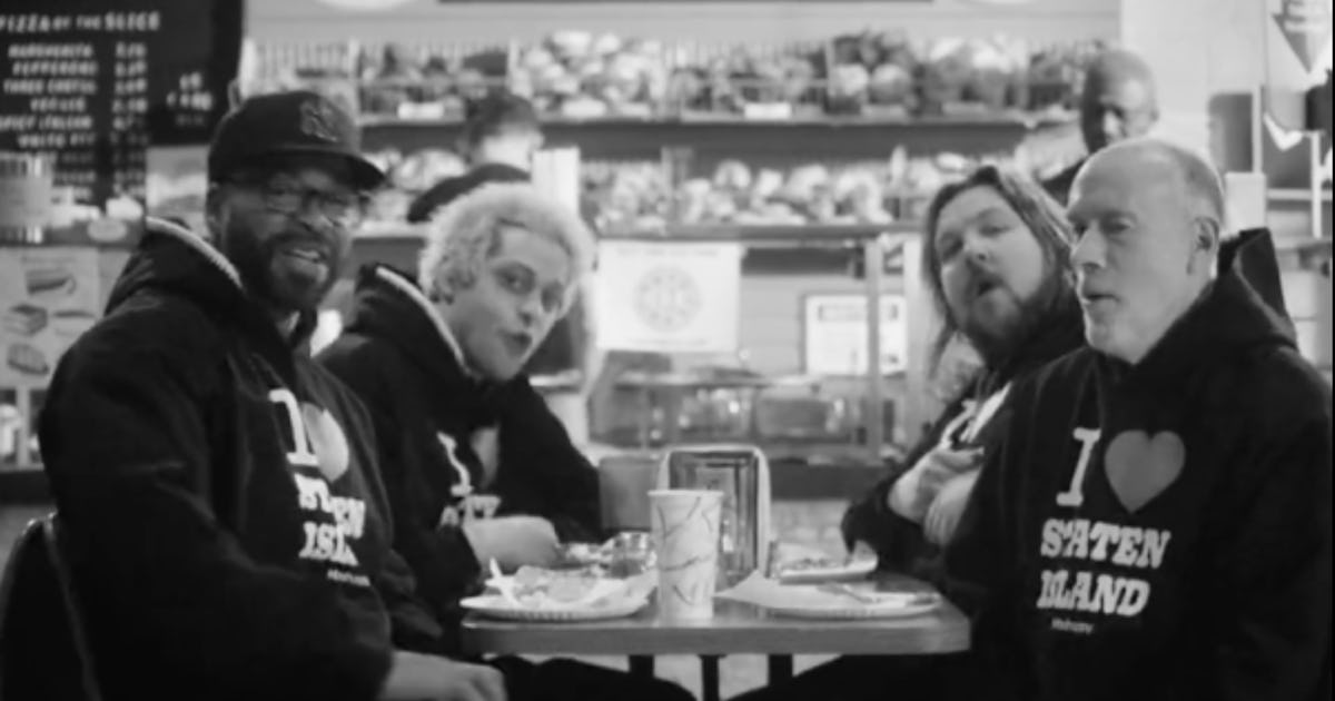 “Put on my bootleg jordans and I boarded the train. Touched down in the land of Colin Jost and the legendary Wu-Tang,” he bellowed while sporting a black “I [heart] Staten Island” hoodie. In a similar outfit, Big Wet appeared and joined in on the verse. (Davidson previously parodied Big Wet’s hit “Turn Up On The Weekend” for a Squid Game parody with Rami Malek.) After singing about bagel and pizza joints, Big Wet added, “You best bet that Marc Cohn’s gonna sue.”