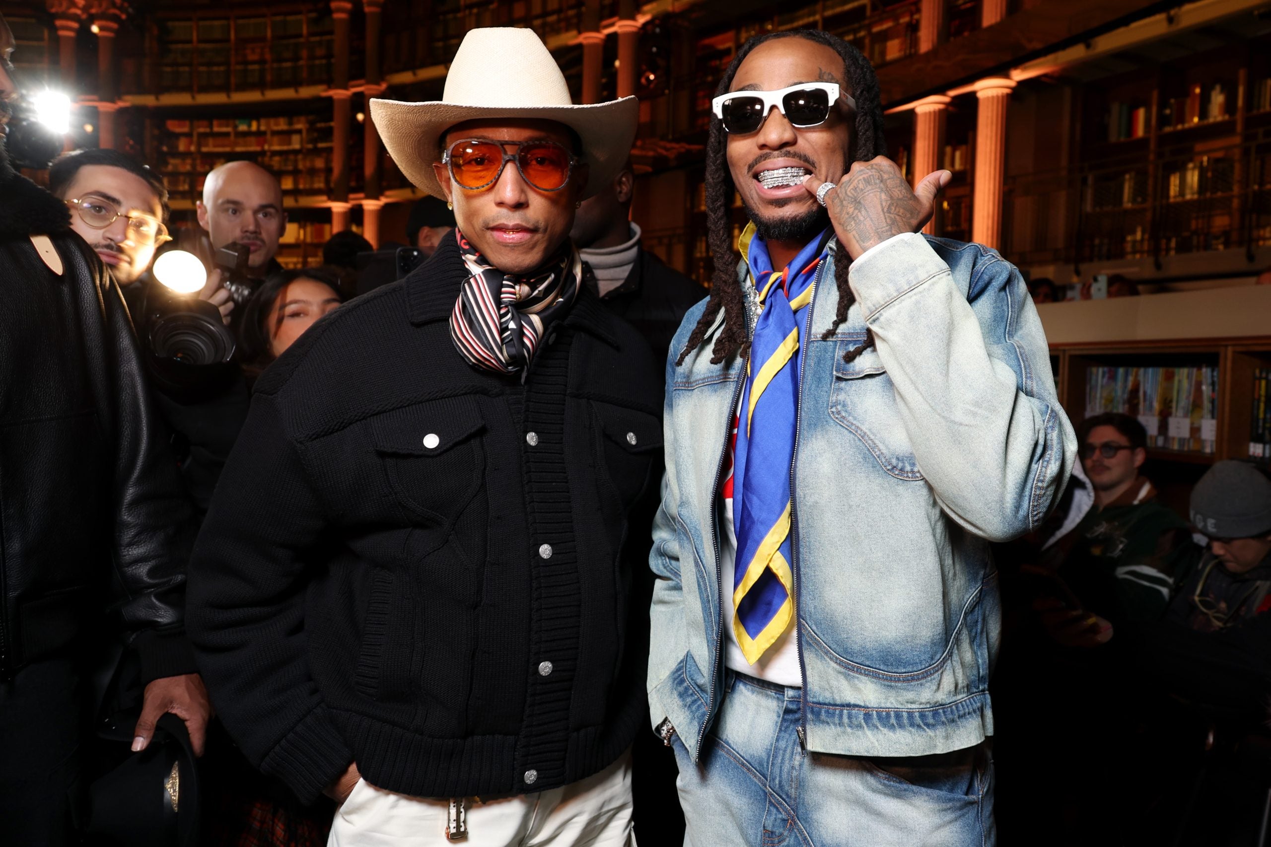 PARIS, FRANCE – JANUARY 19: (EDITORIAL USE ONLY – For Non-Editorial use please seek approval from Fashion House) Pharrell Williams and Quavo attend the Kenzo Menswear Fall/Winter 2024-2025 show as part of Paris Fashion Week on January 19, 2024 in Paris, France. (Photo by Pascal Le Segretain/Getty Images)